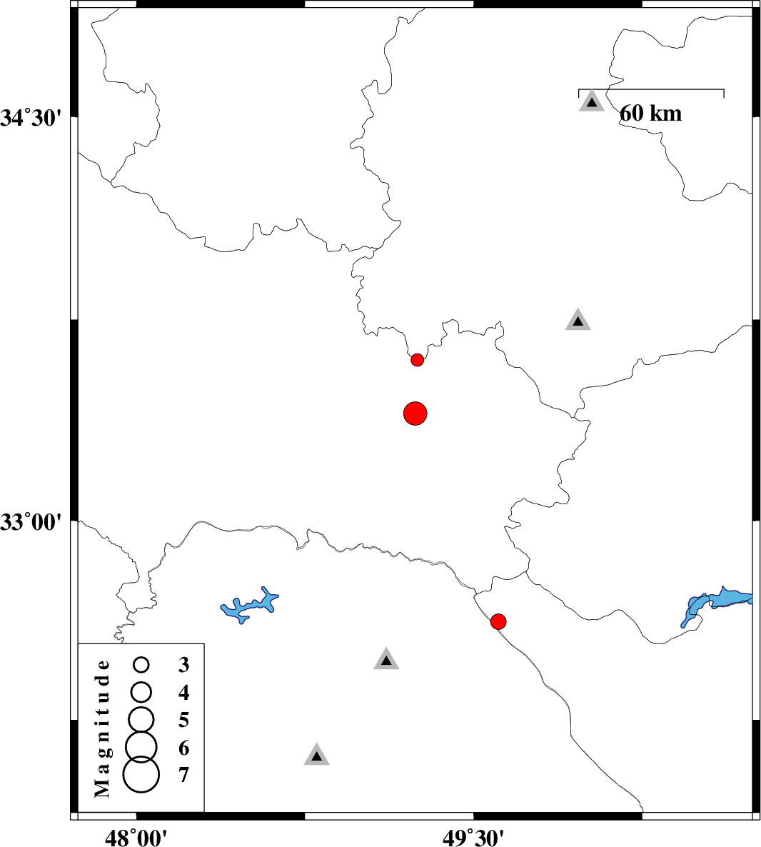 | 2010/11/06 | 04:22:00.2 | 07:52:00.2 | 33.6 | 49.25 | 8 | ML2.6 | Lorestan Province, 21 km North-East of Dorud | ||