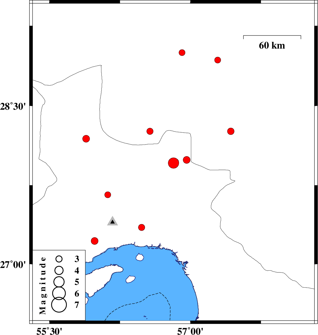 2010/11/10 13:49:13.4 17:19:13.4 27.9656.8235 Mb5.1 Hormozgan Province, 86 km West of Kahnuj