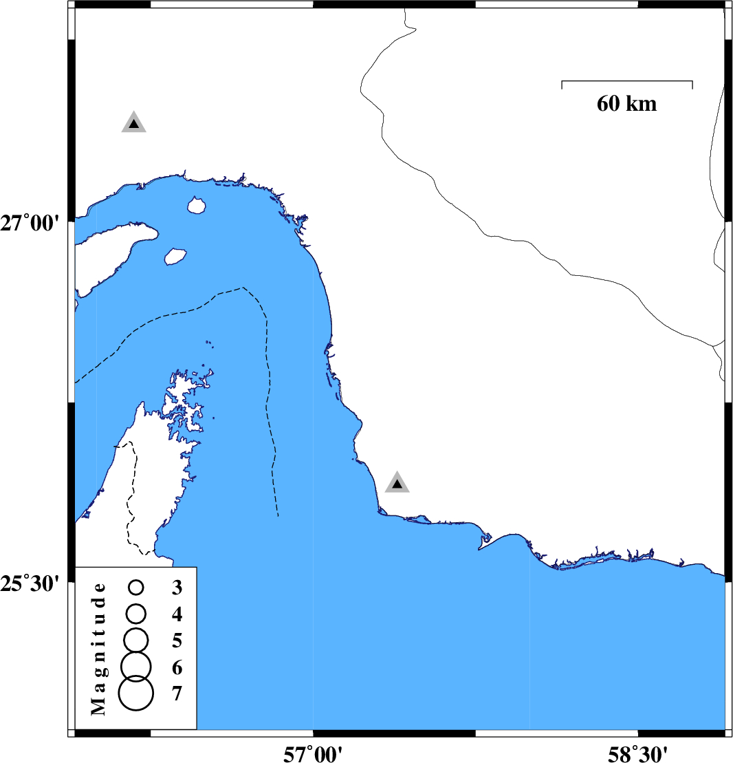 | 2010/11/14 | 14:49:29.7 | 18:19:29.7 | 26.38 | 57.4 | 18 | ML4 | Hormozgan Province, 92 km South-East of Minab |