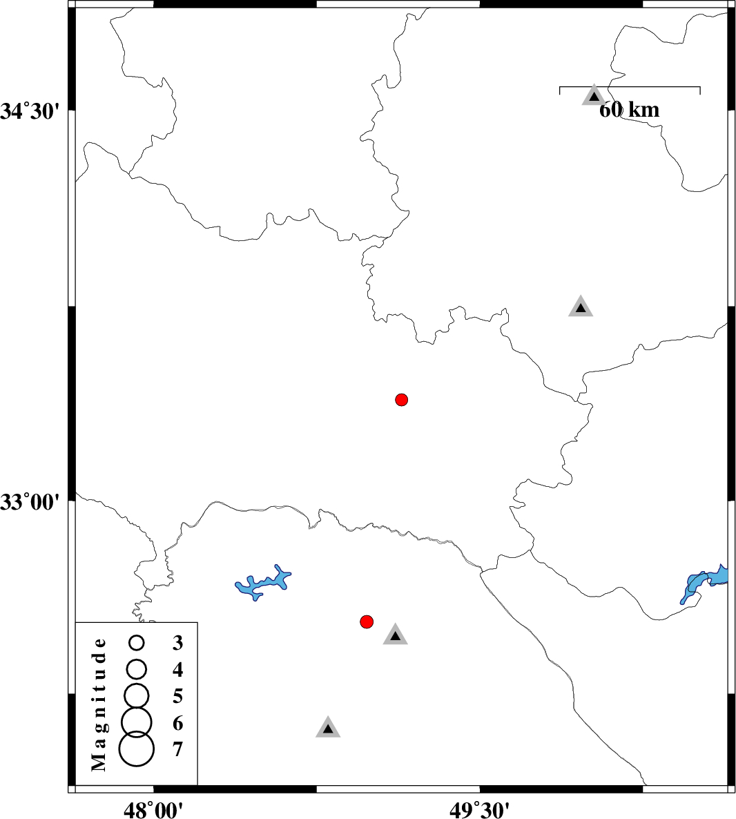 | 2010/11/19 | 11:35:41.0 | 15:05:41.0 | 33.39 | 49.14 | 37 | ML2.6 | Lorestan Province, 12 km Dorud | ||