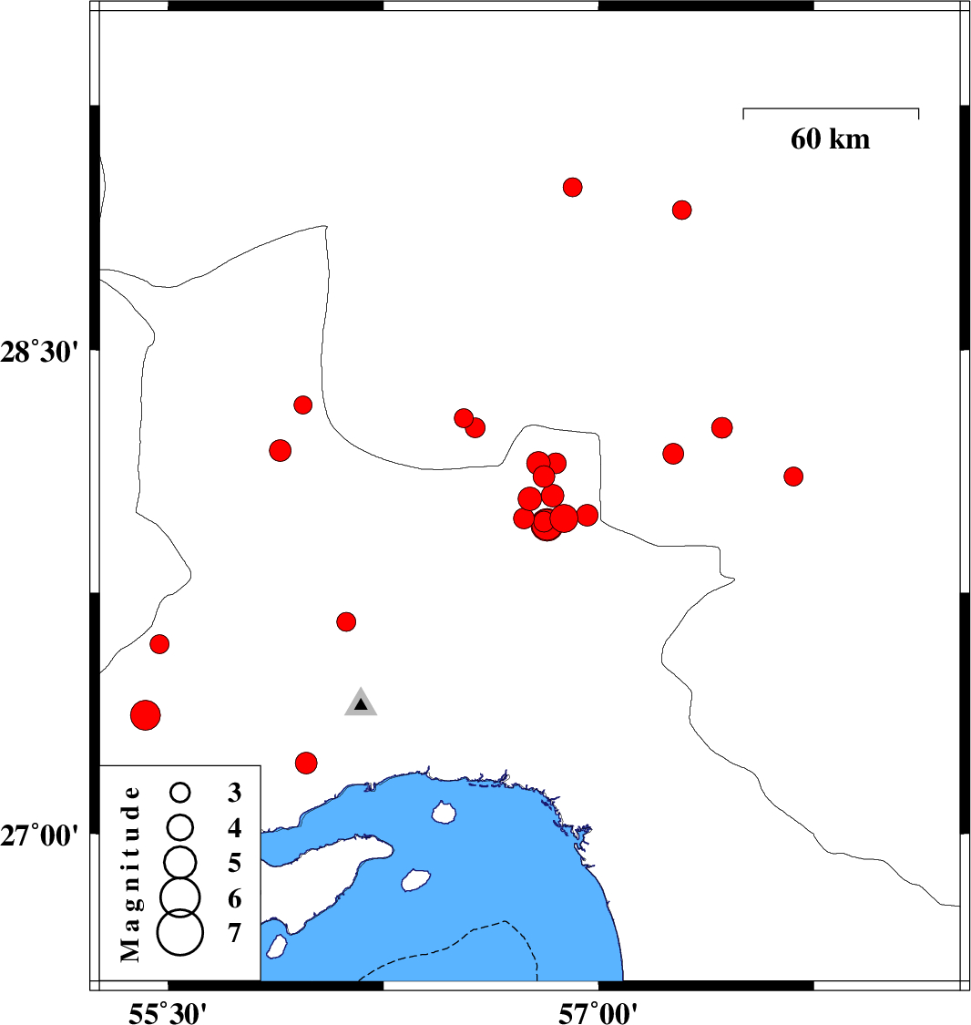 2010/11/11 13:37:37.6 17:07:37.6 27.9656.8239 ML4.8 Hormozgan Province, 86 km West of Kahnuj