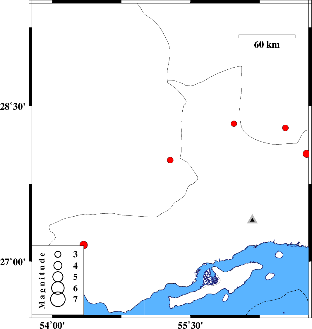 | 2010/11/23 | 15:53:05.0 | 19:23:05.0 | 27.98 | 55.28 | 36 | ML3 | Fars Province, 72 km South-West of Hajiabad | ||