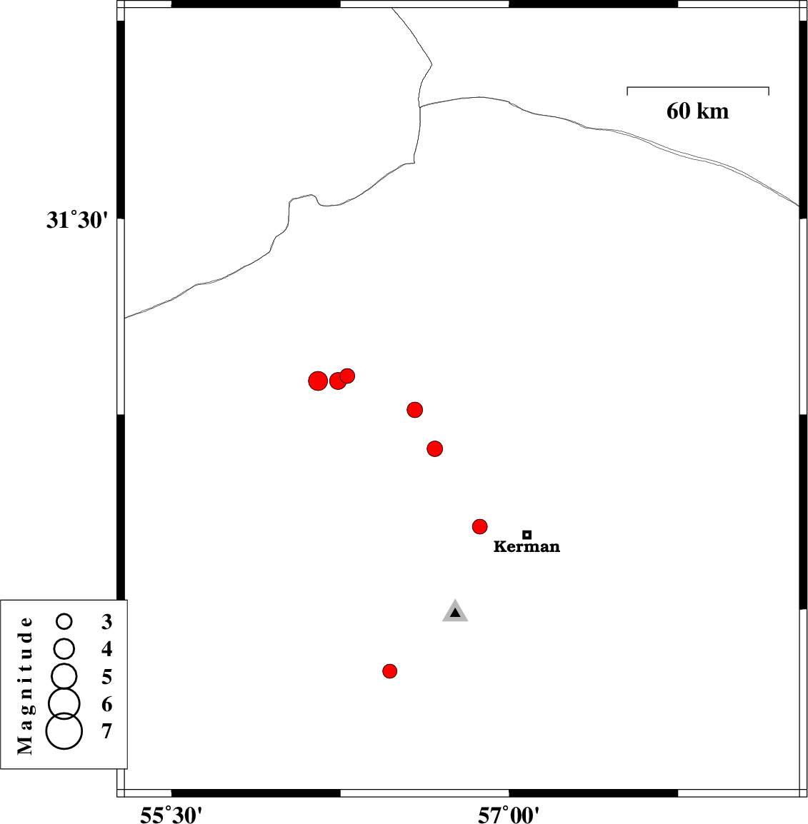 2010/11/20 02:39:52.5 06:09:52.5 30.2457.426 ML3 Kerman Province, 33 km East of Kerman