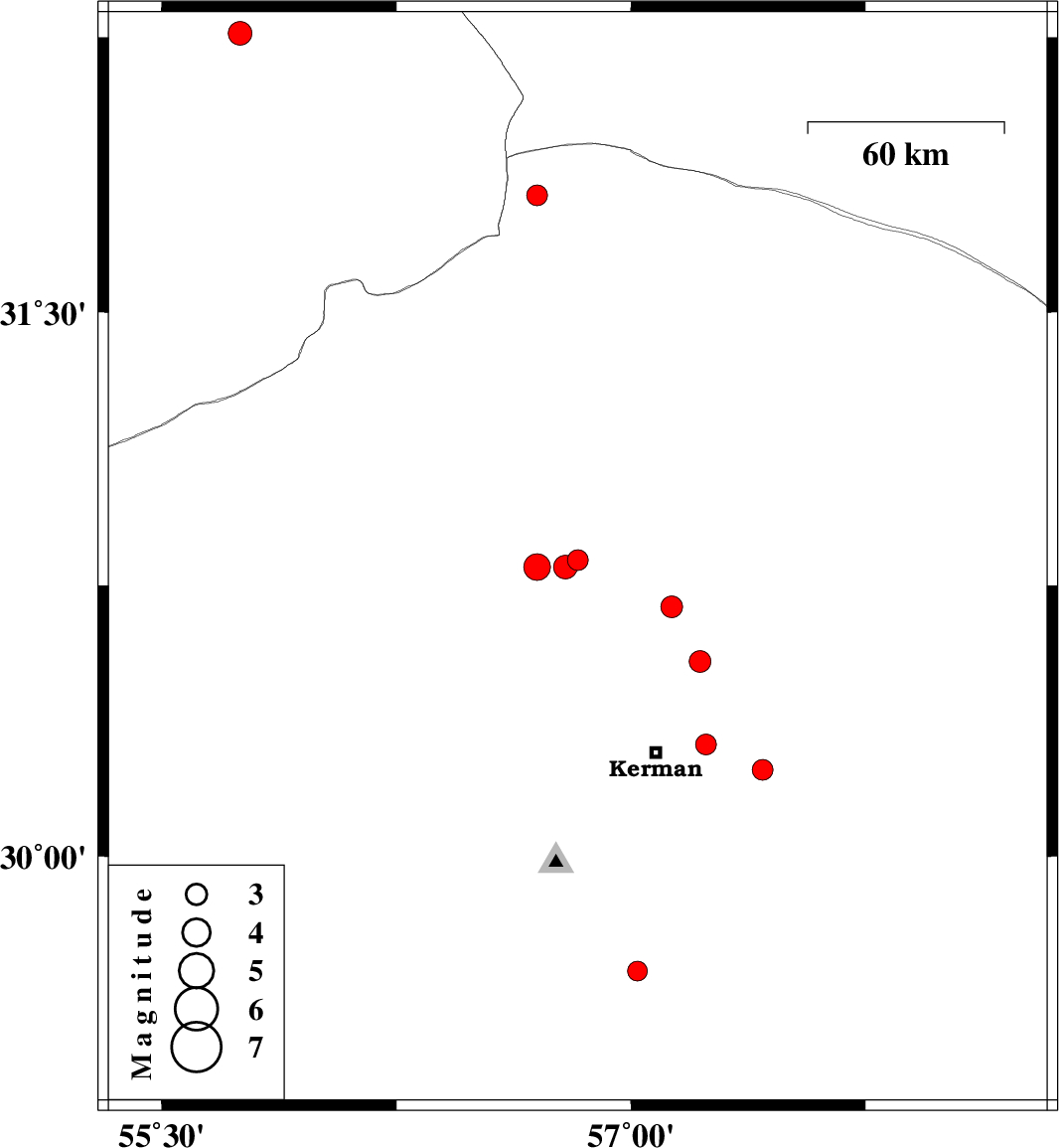 2010/11/20 02:39:52.5 06:09:52.5 30.2457.426 ML3 Kerman Province, 33 km East of Kerman
