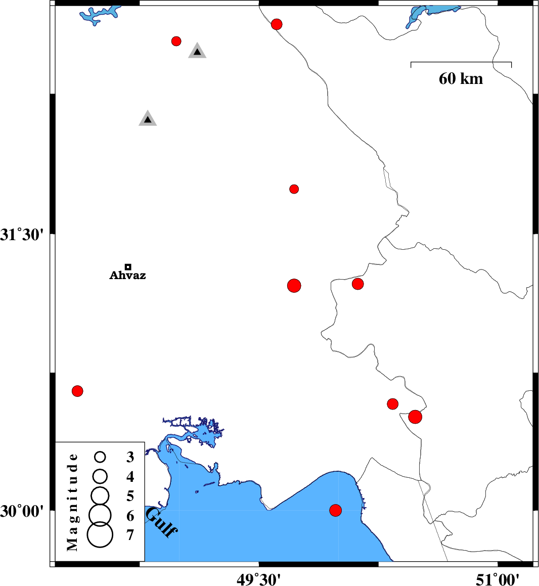 | 2010/11/19 | 13:27:20.5 | 16:57:20.5 | 30 | 49.98 | 44 | ML3.4 | Persian Gulf, 37 km South-East of Hendijan | ||