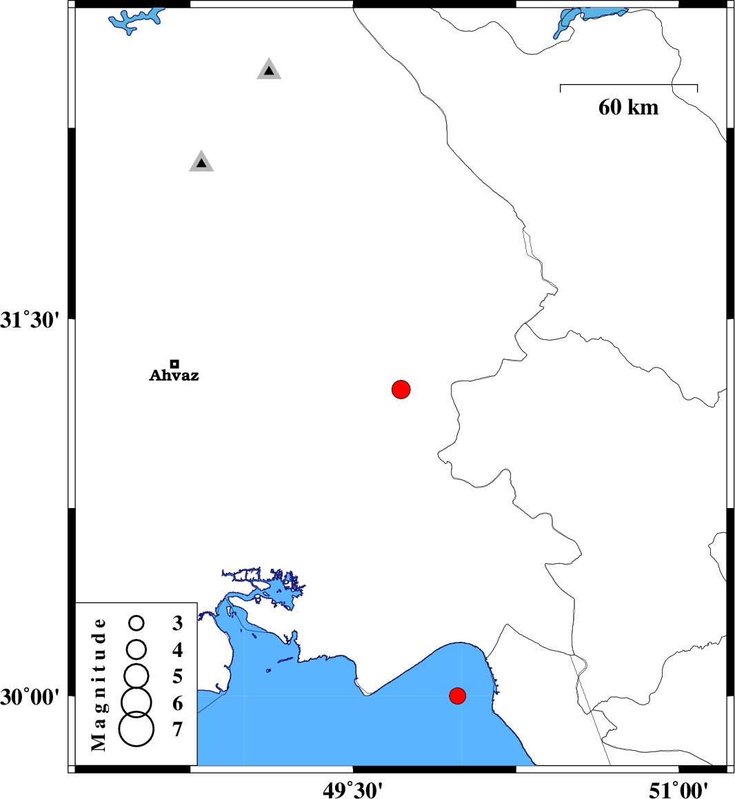 | 2010/11/19 | 13:27:20.5 | 16:57:20.5 | 30 | 49.98 | 44 | ML3.4 | Persian Gulf, 37 km South-East of Hendijan |