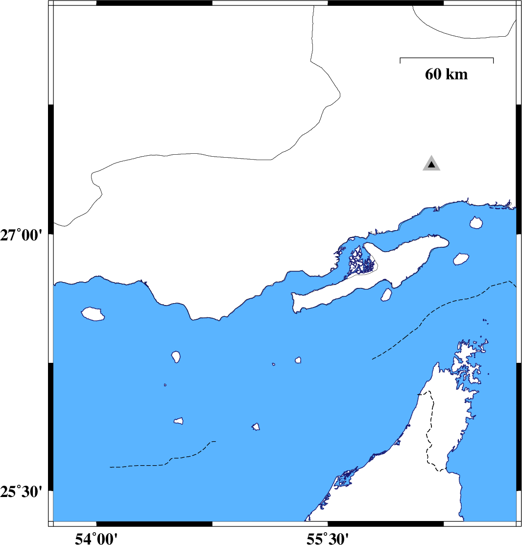 | 2010/12/03 | 03:04:52.4 | 06:34:52.4 | 26.82 | 55.22 | 15 | ML3.4 | Hormozgan Province, 49 km North-East of Bandar-e lengeh |