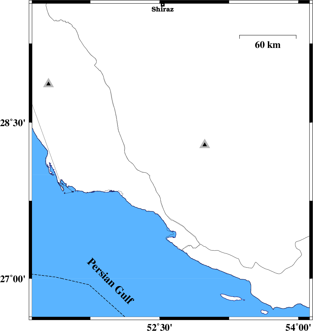 | 2010/12/04 | 12:29:16.4 | 15:59:16.4 | 28.13 | 52.62 | 20 | ML3.2 | Fars Province, 44 km North-East of Jam | ||