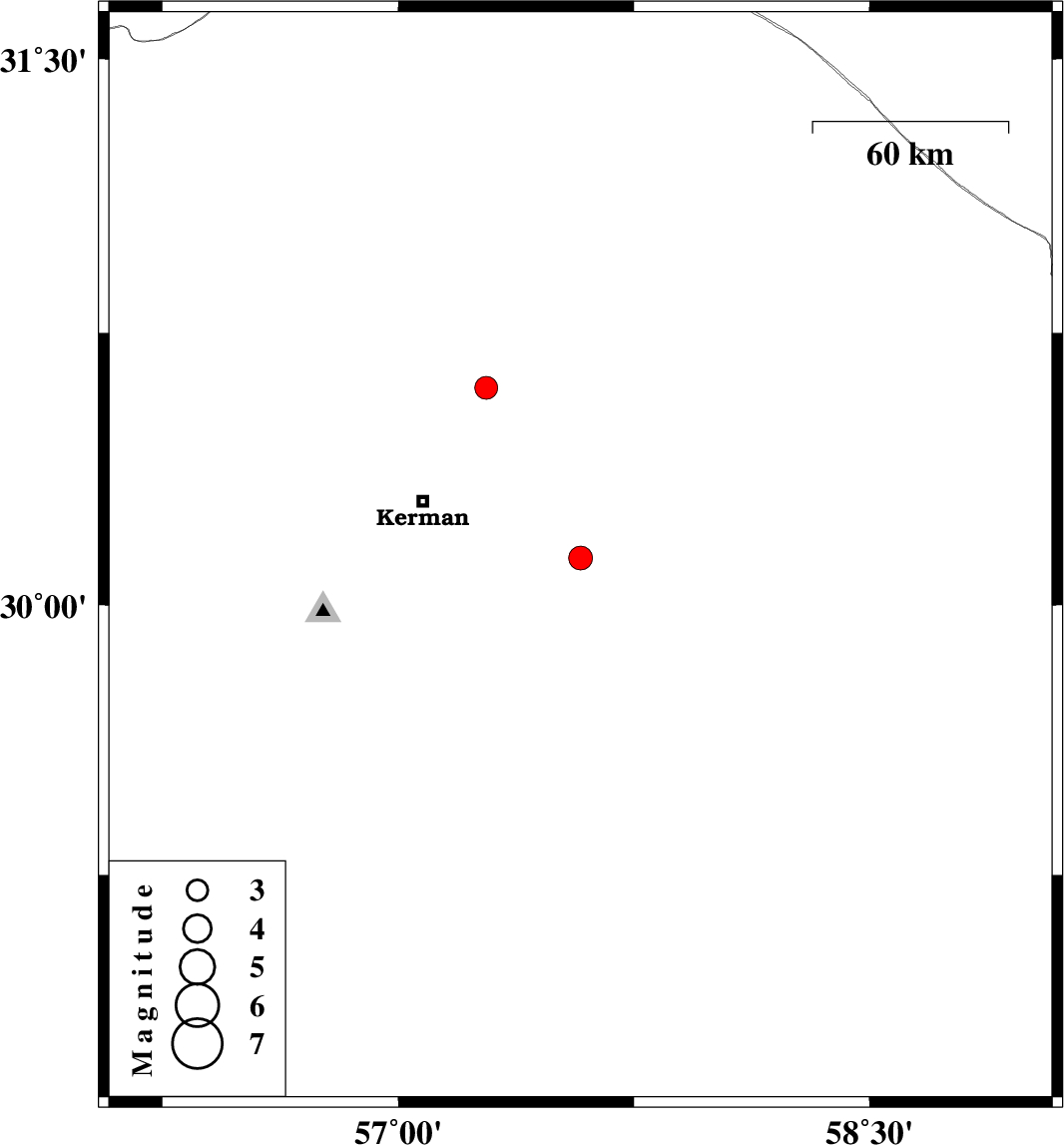 | 2010/12/03 | 16:54:36.2 | 20:24:36.2 | 30.6 | 57.28 | 18 | ML3.3 | Kerman Province, 40 km North-East of Kerman |