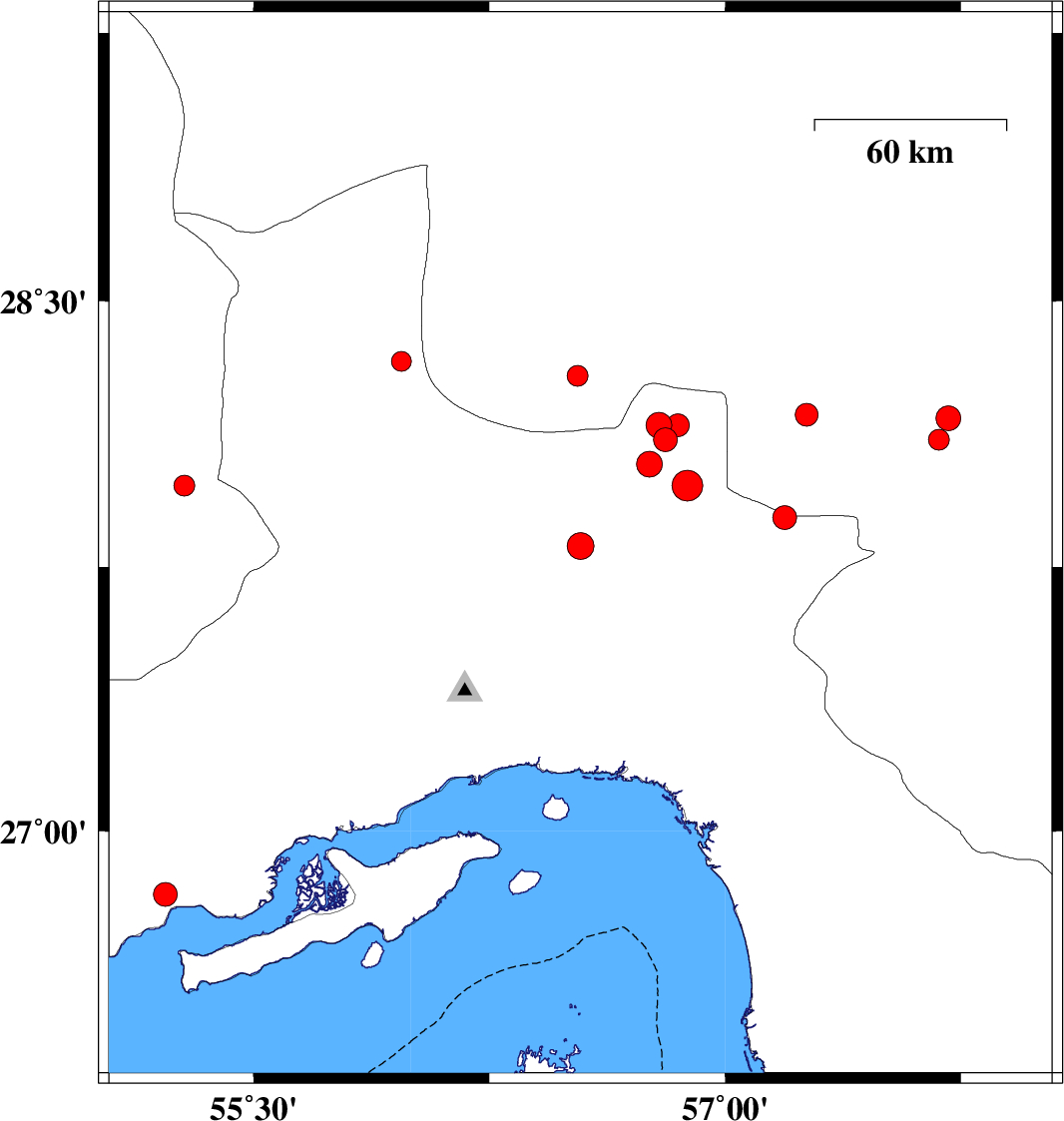 | 2010/12/03 | 03:04:52.4 | 06:34:52.4 | 26.82 | 55.22 | 15 | ML3.4 | Hormozgan Province, 49 km North-East of Bandar-e lengeh | ||