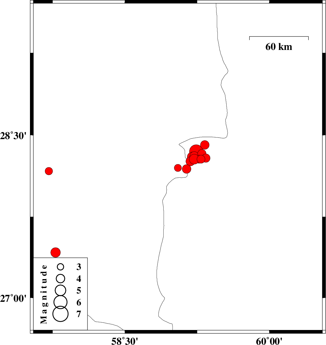 2010/12/17 07:39:20.0 11:09:20.0 27.4257.7815 ML4.5 Kerman Province, 28 km East of Manujan