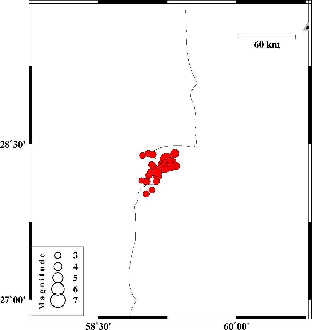 2010/12/21 19:44:43.9 23:14:43.9 28.3958.9814 ML3 Kerman Province, 100 km South-East of Bam