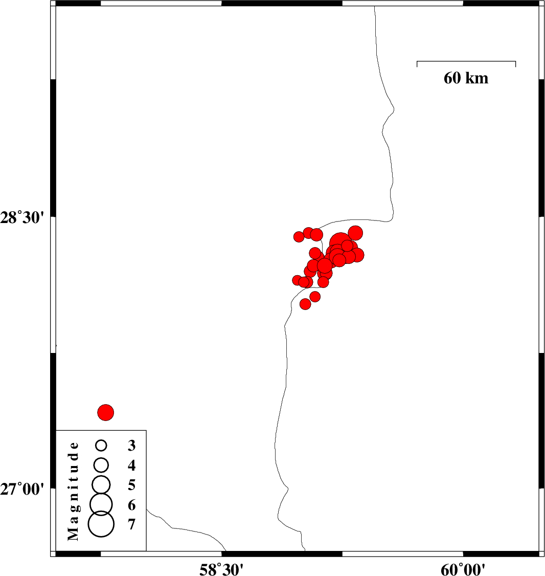 2010/12/21 23:44:15.6 03:14:15.6 28.1459.0114 ML3 Kerman Province, 131 km North-East of Kahnuj