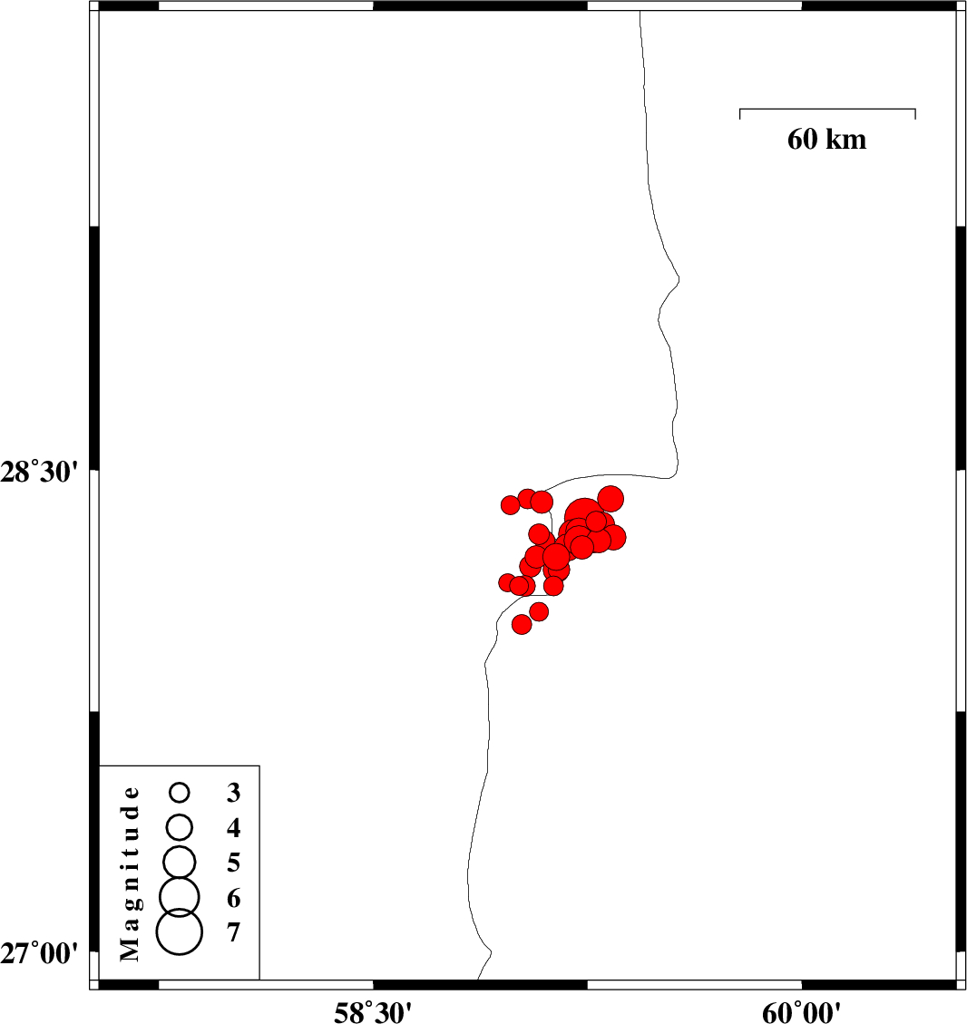 2010/12/21 23:44:15.6 03:14:15.6 28.1459.0114 ML3 Kerman Province, 131 km North-East of Kahnuj