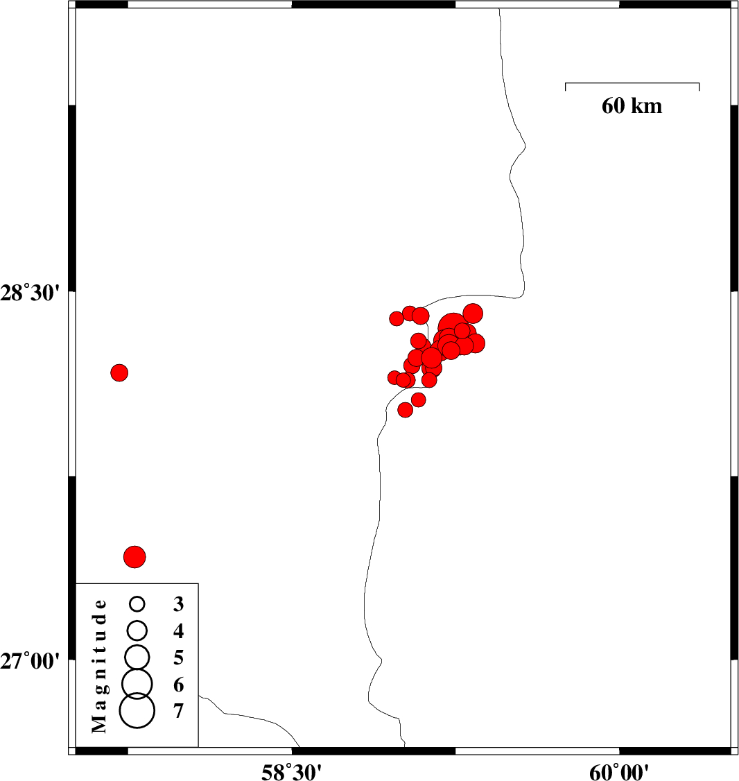 2010/12/21 23:44:15.6 03:14:15.6 28.1459.0114 ML3 Kerman Province, 131 km North-East of Kahnuj