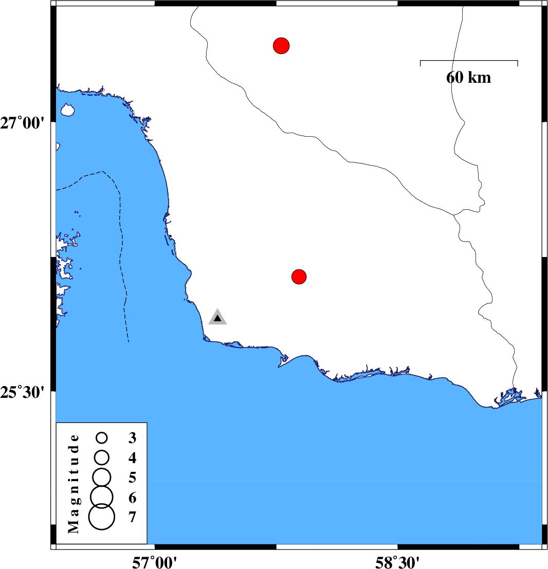 2010/12/22 19:04:51.3 22:34:51.3 26.1457.8946 ML4.1 Hormozgan Province, 58 km North-East of Jask