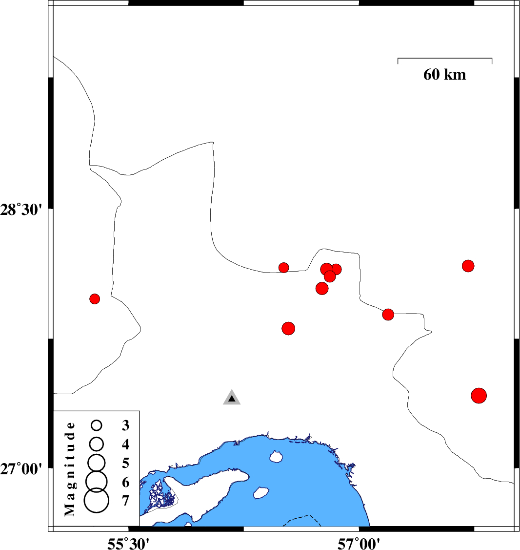 | 2010/12/03 | 03:04:52.4 | 06:34:52.4 | 26.82 | 55.22 | 15 | ML3.4 | Hormozgan Province, 49 km North-East of Bandar-e lengeh | ||