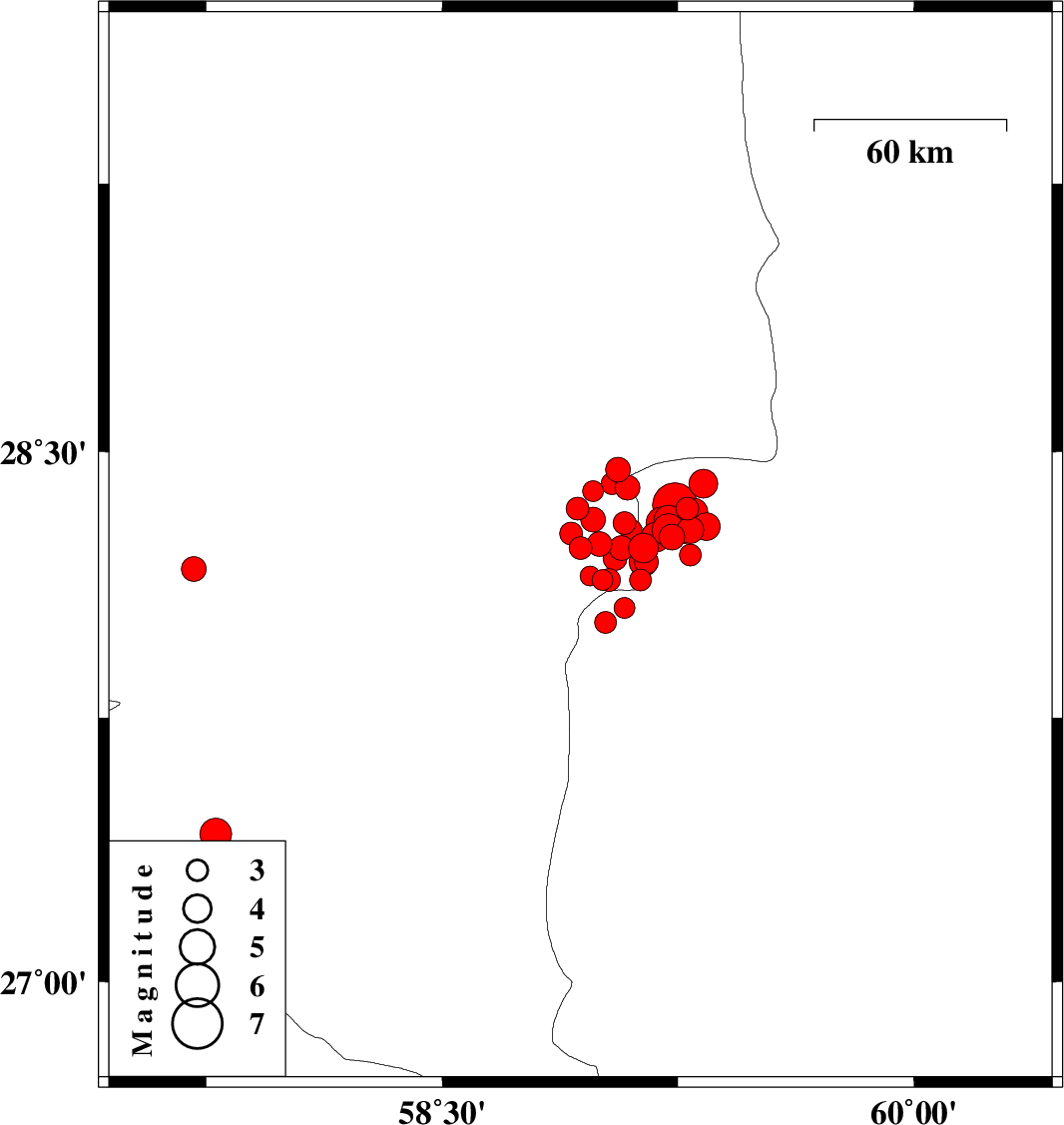 2010/12/23 20:07:55.6 23:37:55.6 28.3458.9314 ML3.2 Kerman Province, 102 km South-East of Bam