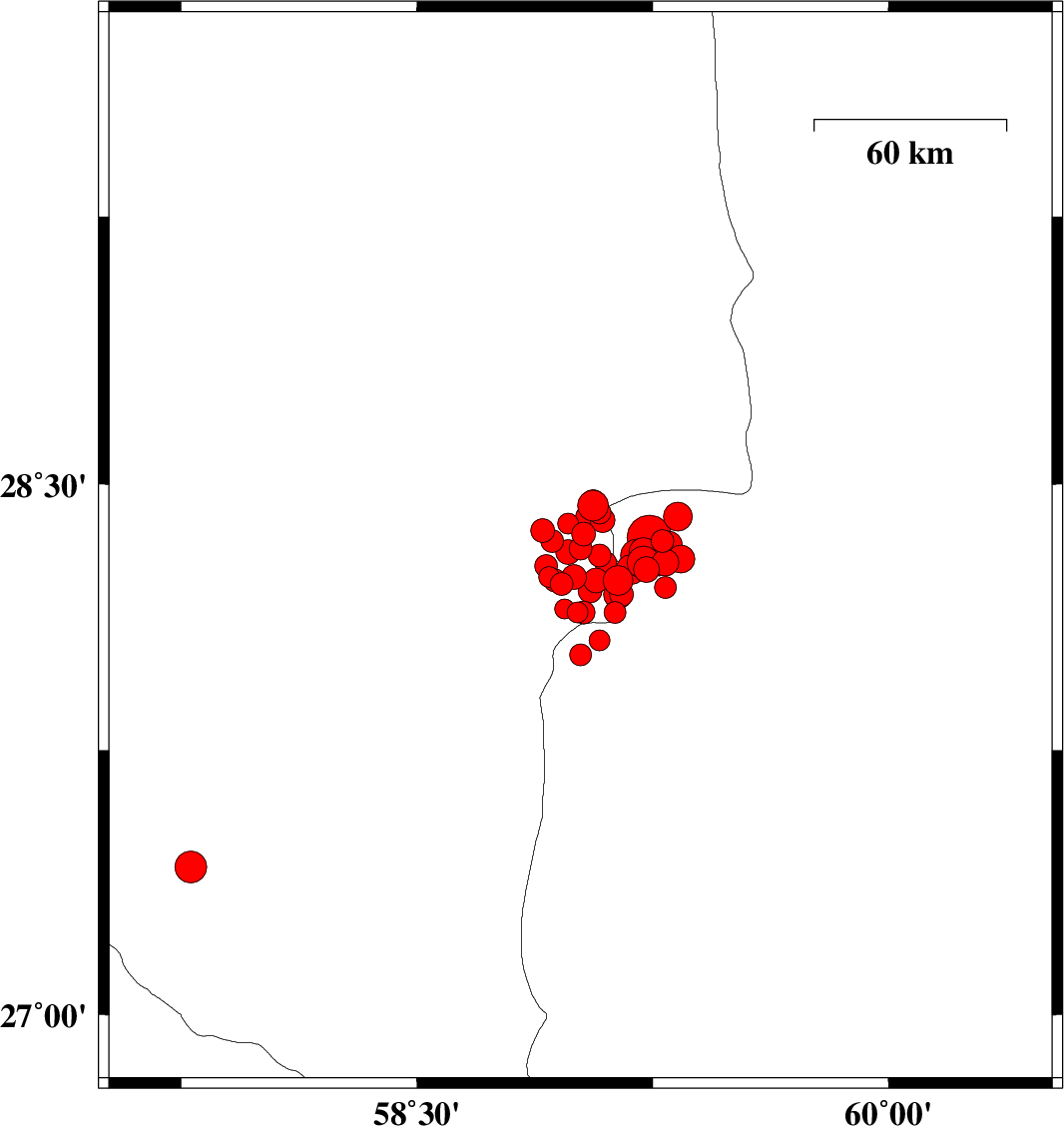 2010/12/21 23:44:15.6 03:14:15.6 28.1459.0114 ML3 Kerman Province, 131 km North-East of Kahnuj