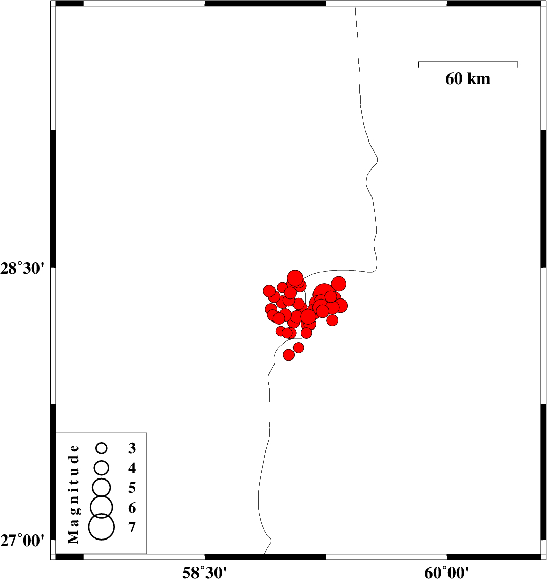 2010/12/21 19:44:43.9 23:14:43.9 28.3958.9814 ML3 Kerman Province, 100 km South-East of Bam