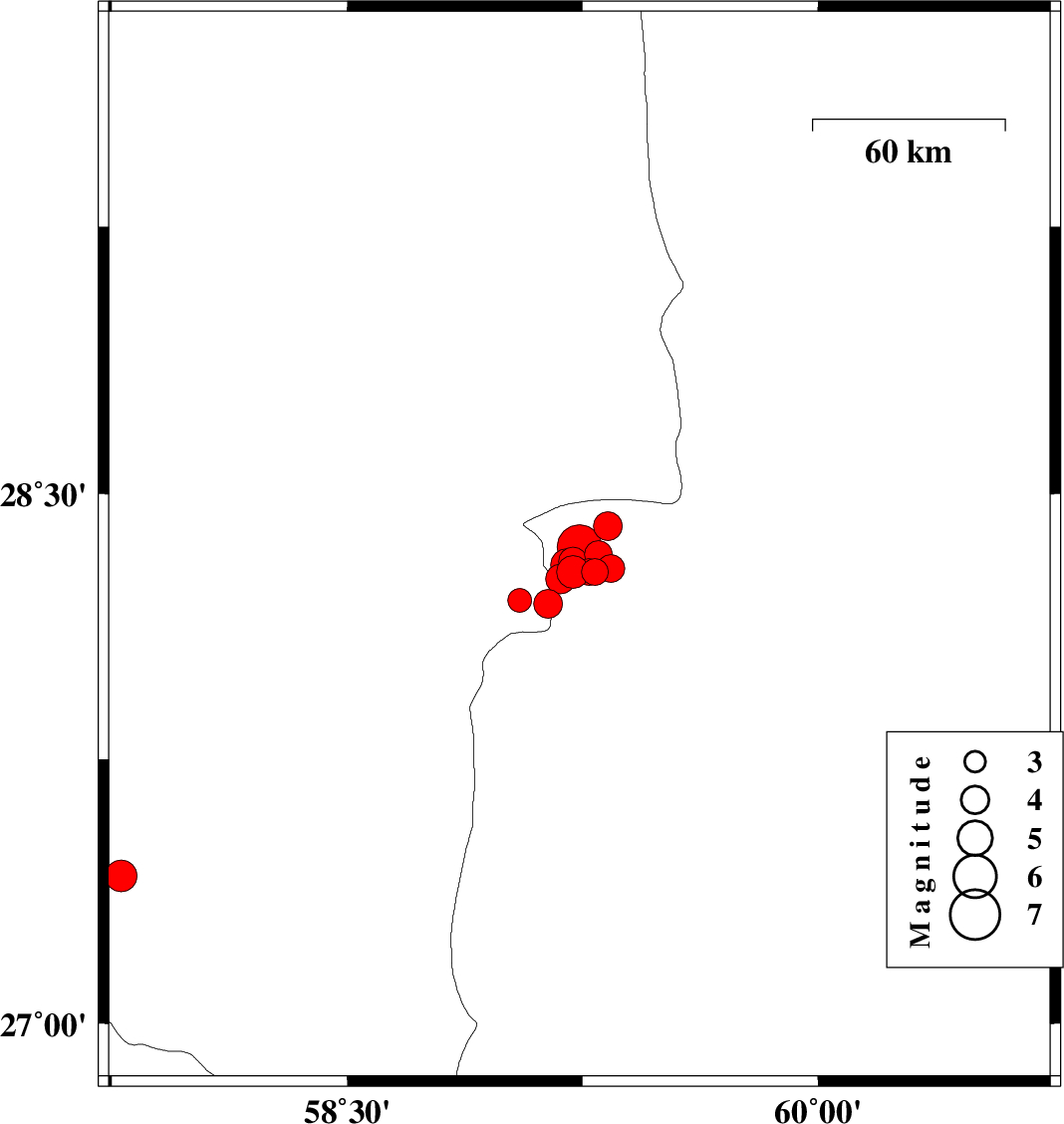 2010/12/17 07:39:20.0 11:09:20.0 27.4257.7815 ML4.5 Kerman Province, 28 km East of Manujan
