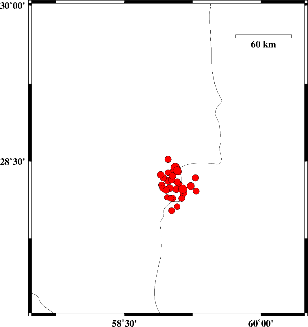 2010/12/21 19:44:43.9 23:14:43.9 28.3958.9814 ML3 Kerman Province, 100 km South-East of Bam