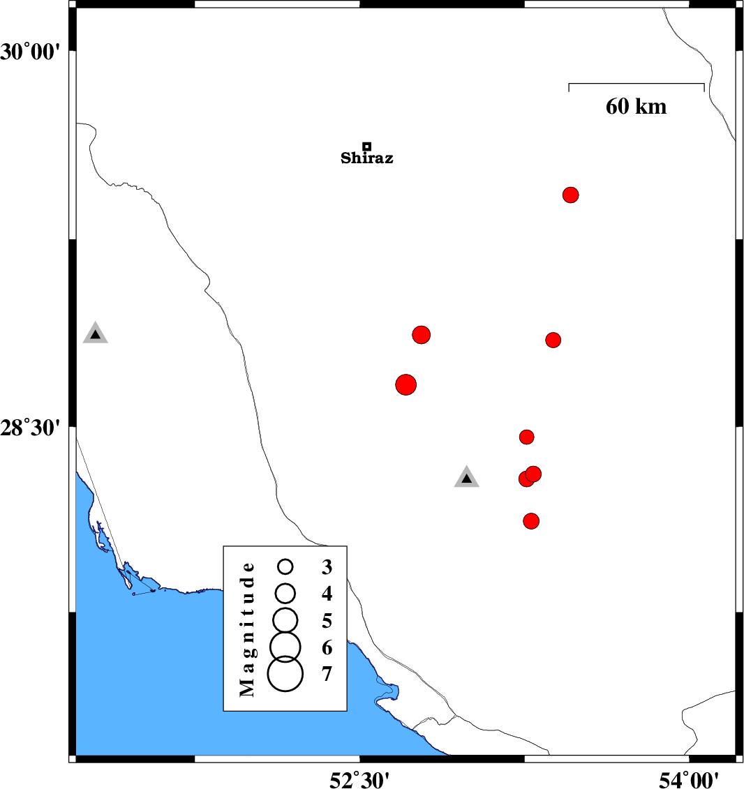 | 2010/12/04 | 12:29:16.4 | 15:59:16.4 | 28.13 | 52.62 | 20 | ML3.2 | Fars Province, 44 km North-East of Jam | ||
