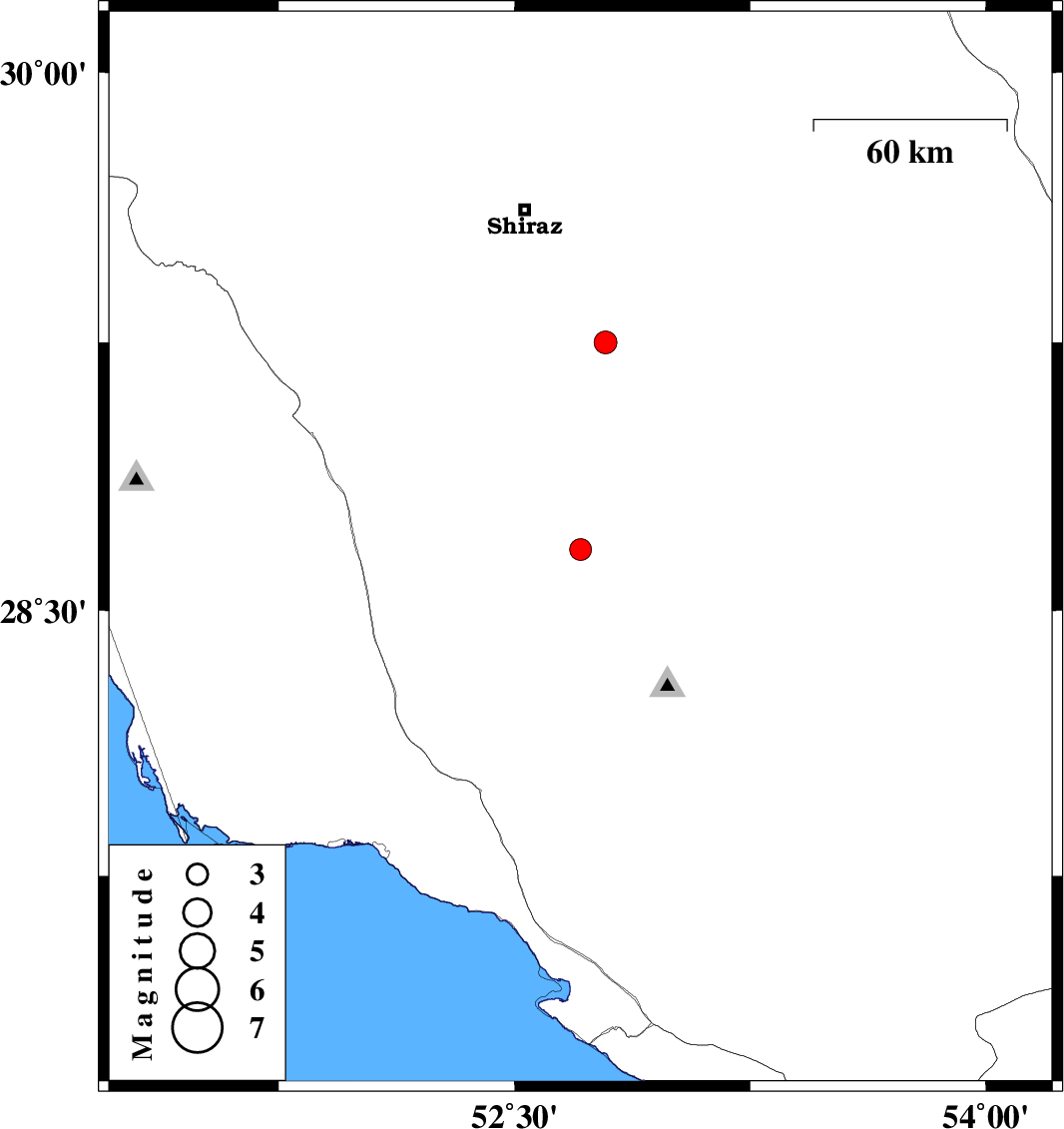 | 2010/12/28 | 08:09:36.0 | 11:39:36.0 | 29.25 | 52.79 | 14 | ML3.3 | Fars Province, 51 km North-East of Firuz Abad |