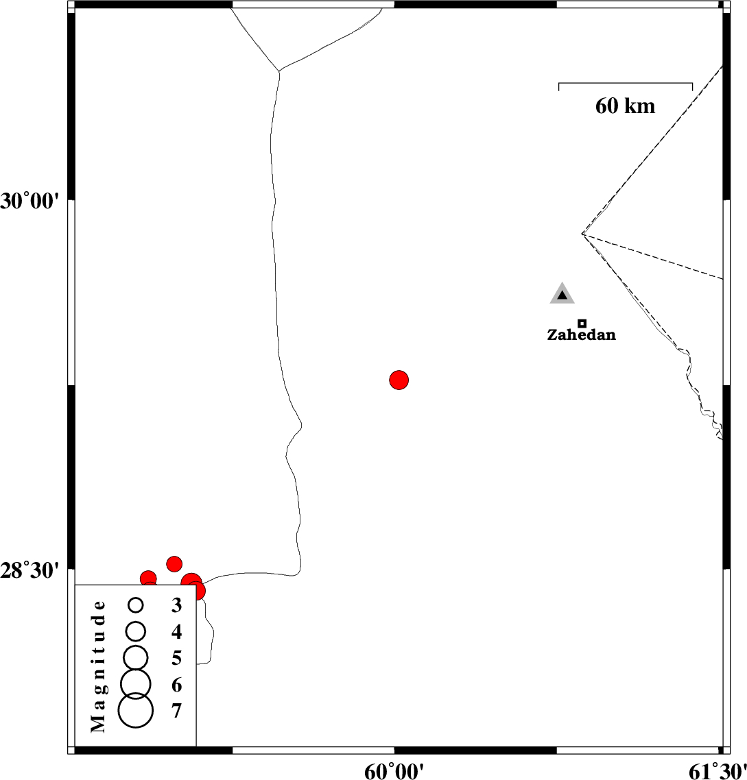 | 2010/12/31 | 23:18:41.4 | 02:48:41.4 | 29.27 | 60.02 | 15 | ML3.9 | Sistan va Baloochestan Province, 86 km South-West of Zahedan | ||