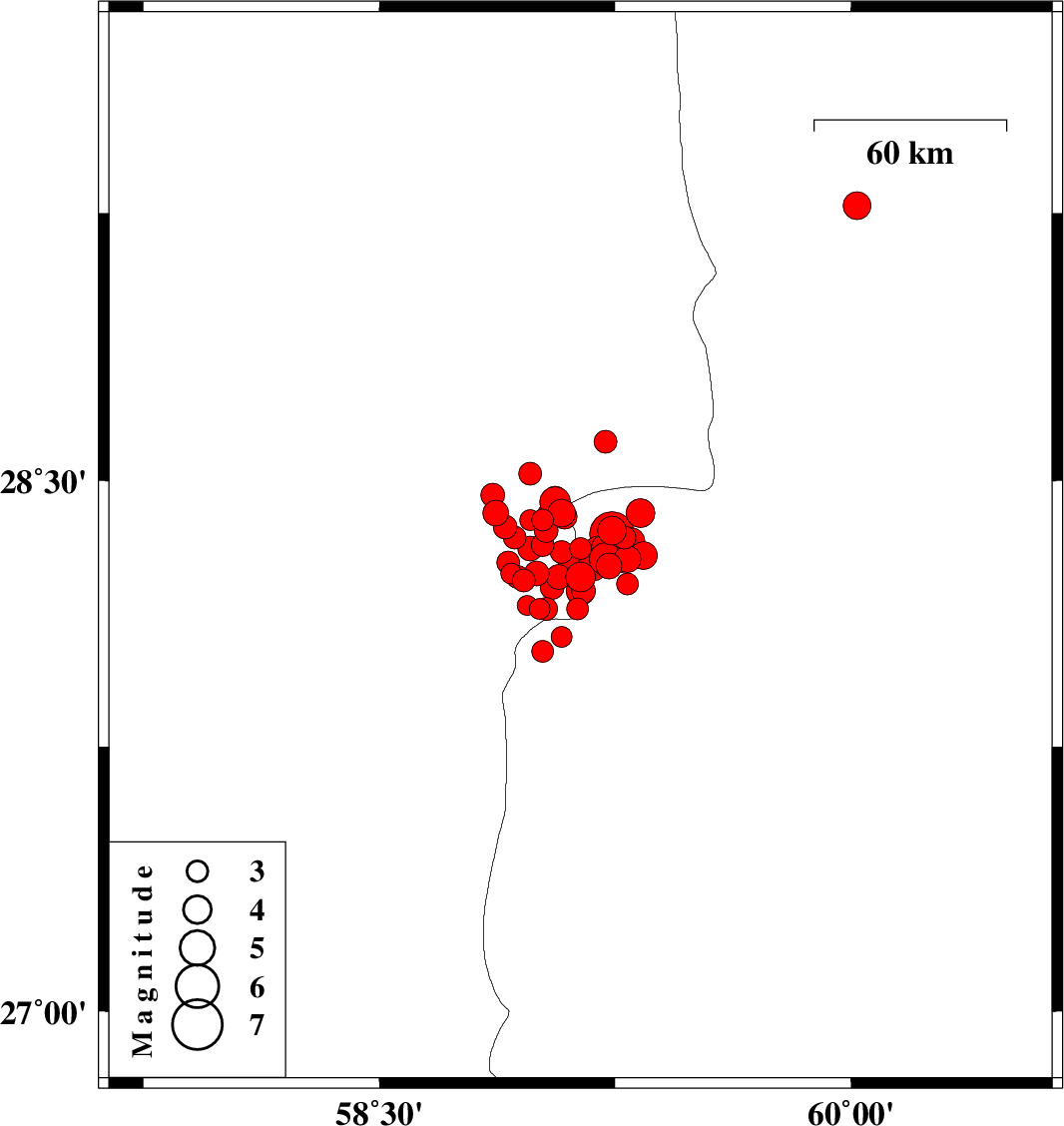 2010/12/28 19:01:44.7 22:31:44.7 28.4159.0846 ML4 Sistan va Baloochestan Province, 104 km South-East of Bam