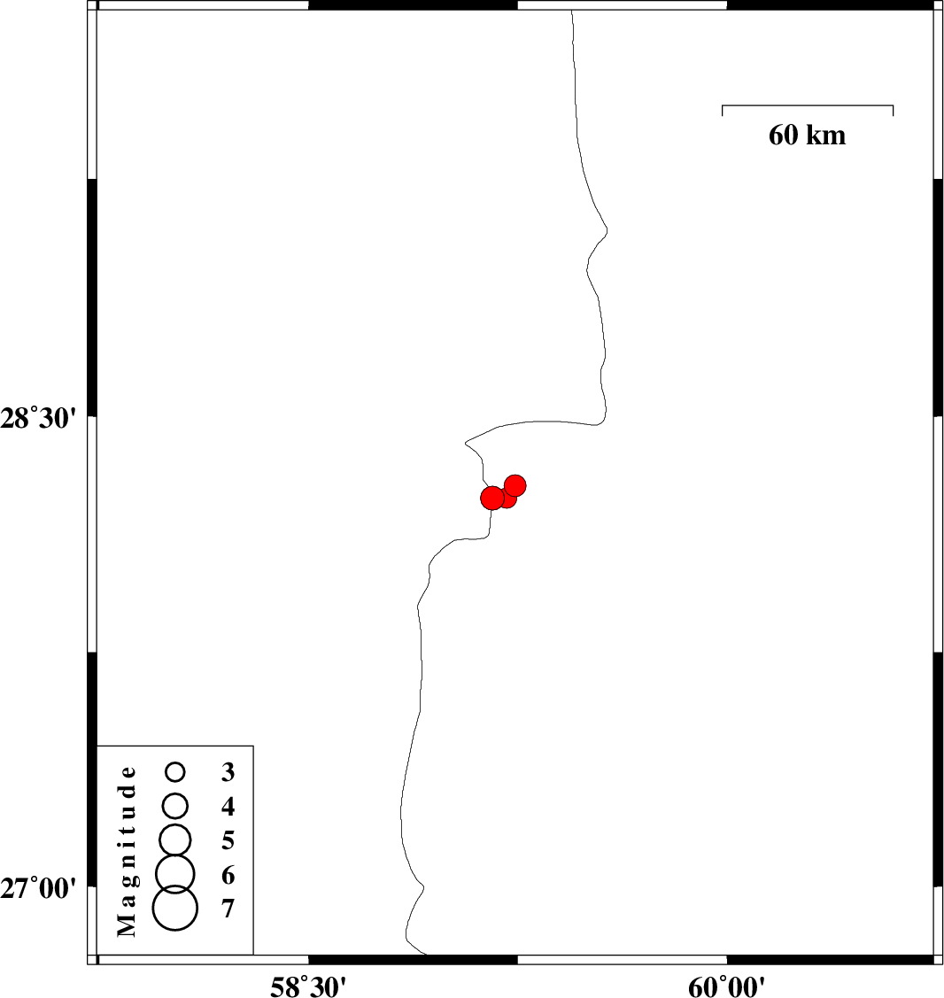 | 2011/01/12 | 11:16:45.4 | 14:46:45.4 | 28.28 | 59.24 | 14 | ML3.5 | Sistan va Baloochestan Province, 126 km South-East of Bam | ||