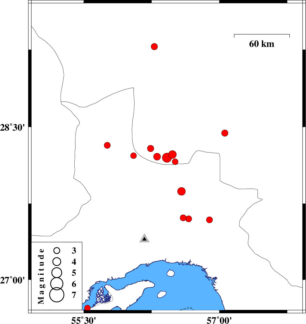 2011/01/11 08:09:03.3 11:39:03.3 27.6156.614 ML3.1 Hormozgan Province, 57 km North-East of Bandar-e abbas