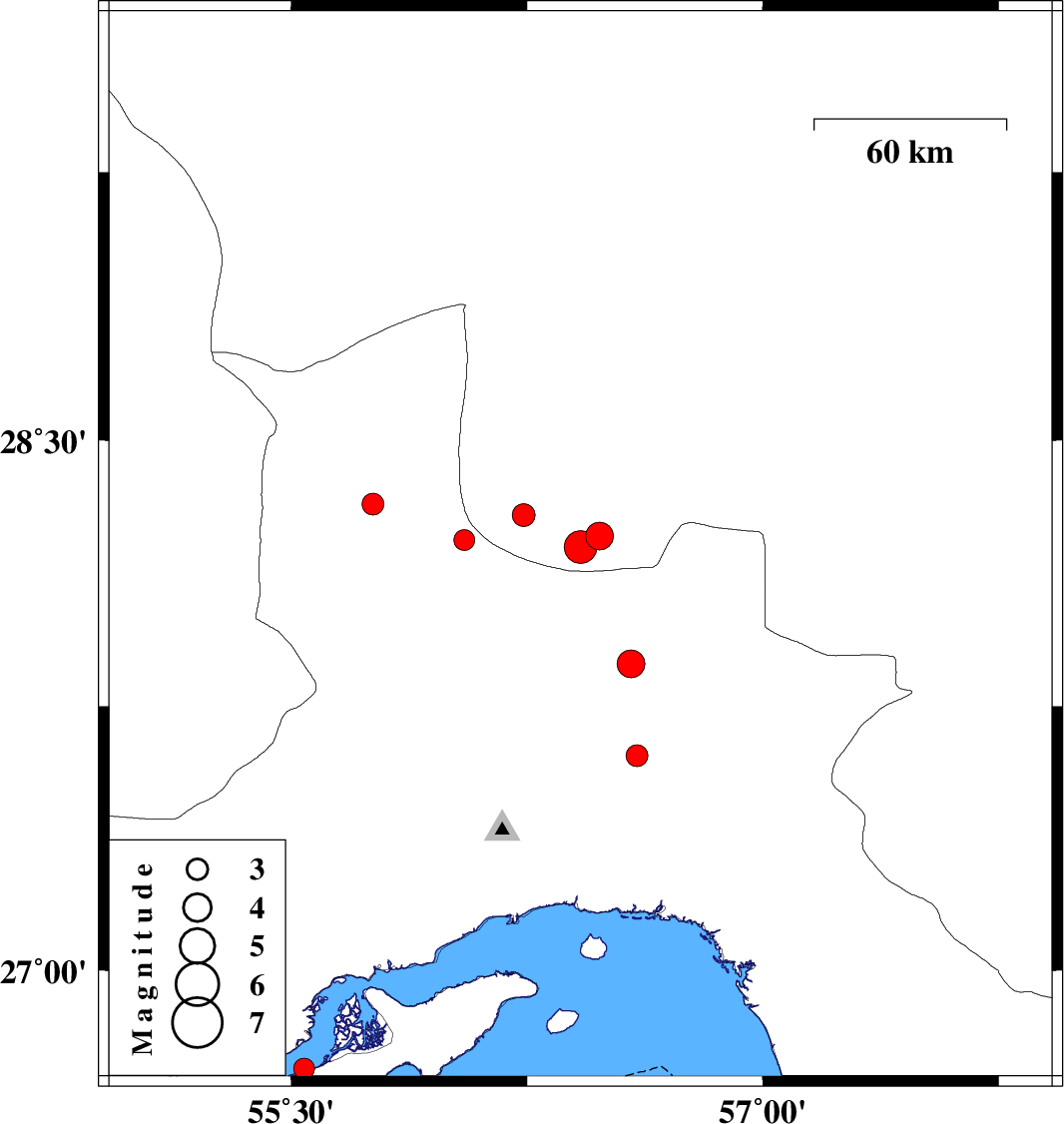 2011/01/11 08:09:03.3 11:39:03.3 27.6156.614 ML3.1 Hormozgan Province, 57 km North-East of Bandar-e abbas