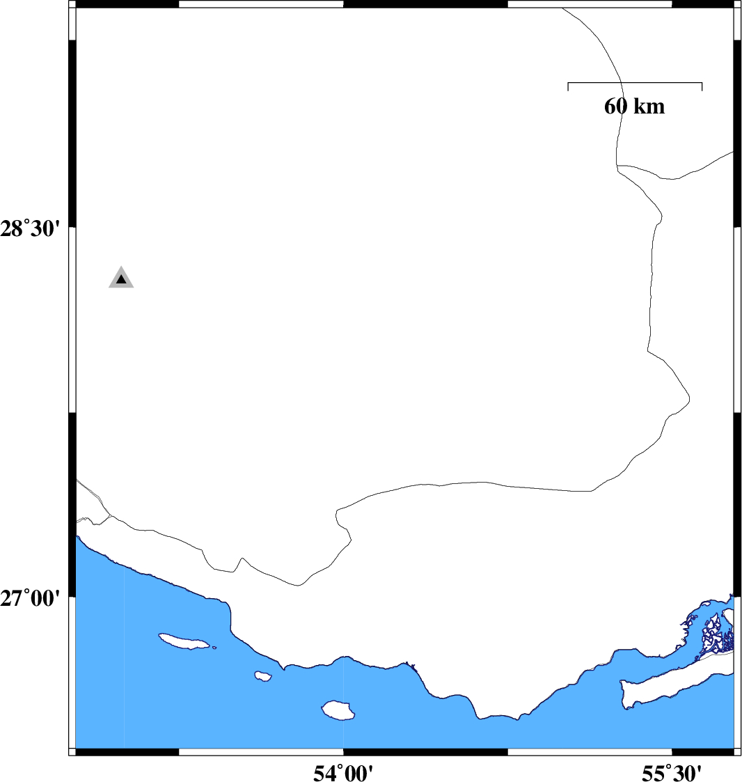 | 2011/01/14 | 21:54:11.0 | 01:24:11.0 | 26.72 | 55.54 | 43 | ML2.9 | Persian Gulf, 72 km North-East of Bandar-e lengeh |