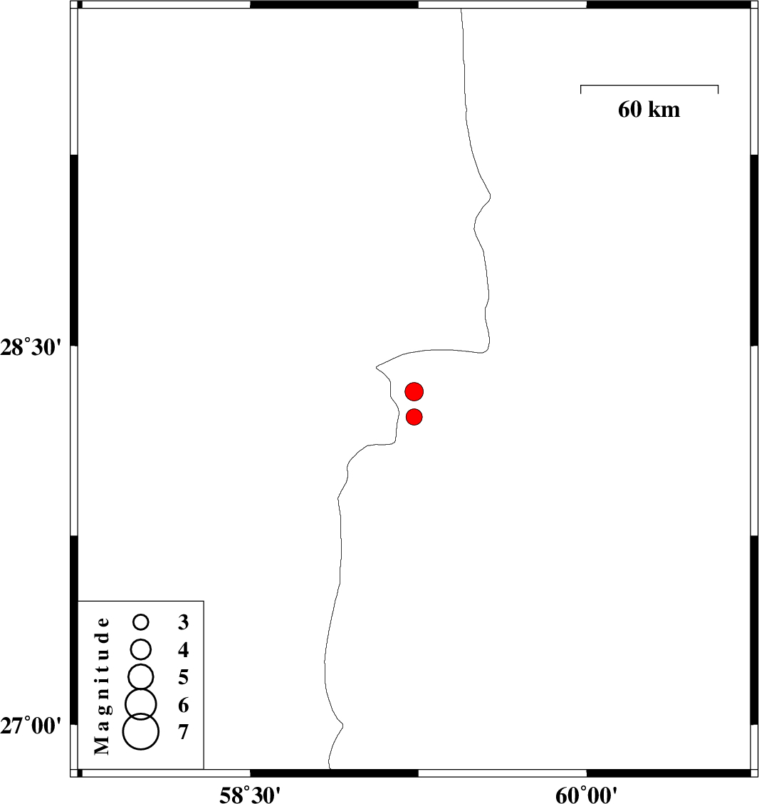| 2011/01/20 | 06:20:16.9 | 09:50:16.9 | 28.32 | 59.23 | 18 | ML3.6 | Sistan va Baloochestan Province, 122 km South-East of Bam | ||
