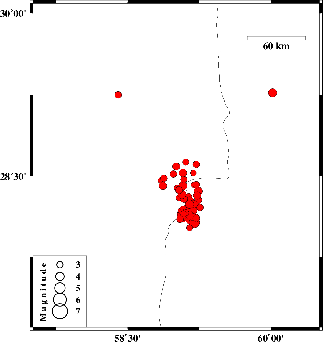 2011/01/27 09:47:30.6 13:17:30.6 28.6359.1115 ML3 Kerman Province, 91 km South-East of Bam