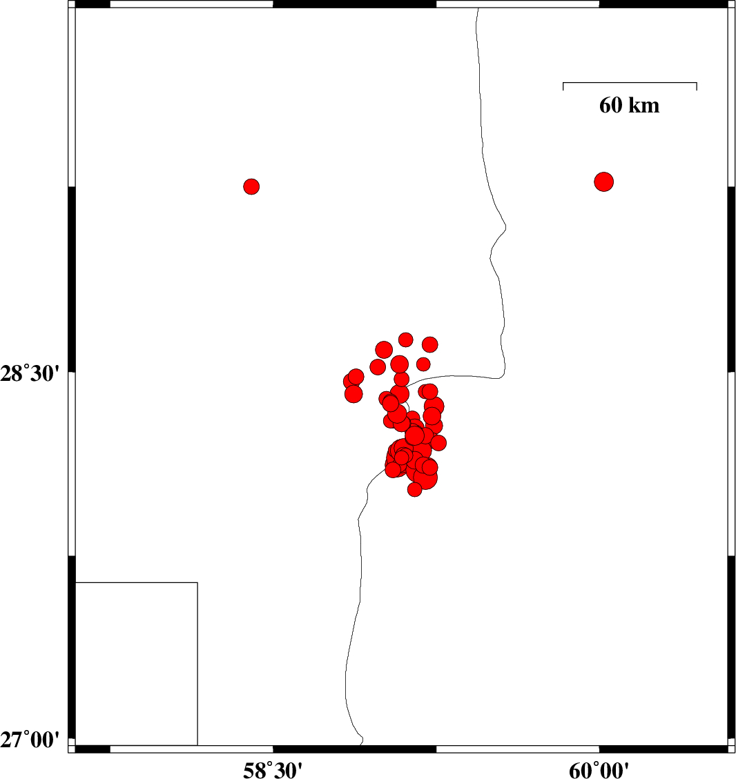 2011/01/27 16:58:55.7 20:28:55.7 28.359.0814 ML3 Kerman Province, 114 km South-East of Bam