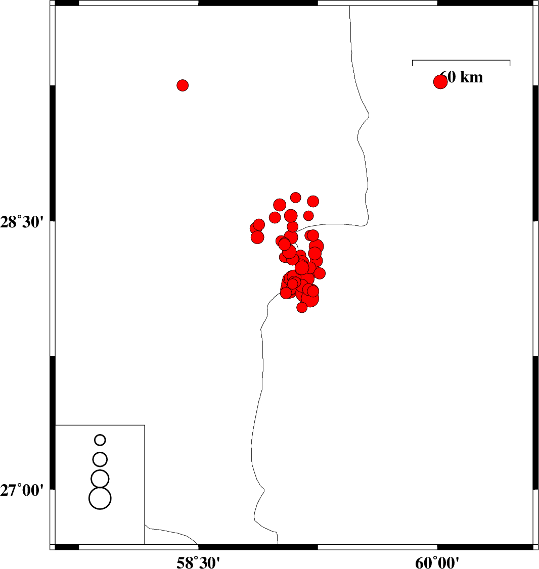 2011/01/27 16:58:55.7 20:28:55.7 28.359.0814 ML3 Kerman Province, 114 km South-East of Bam