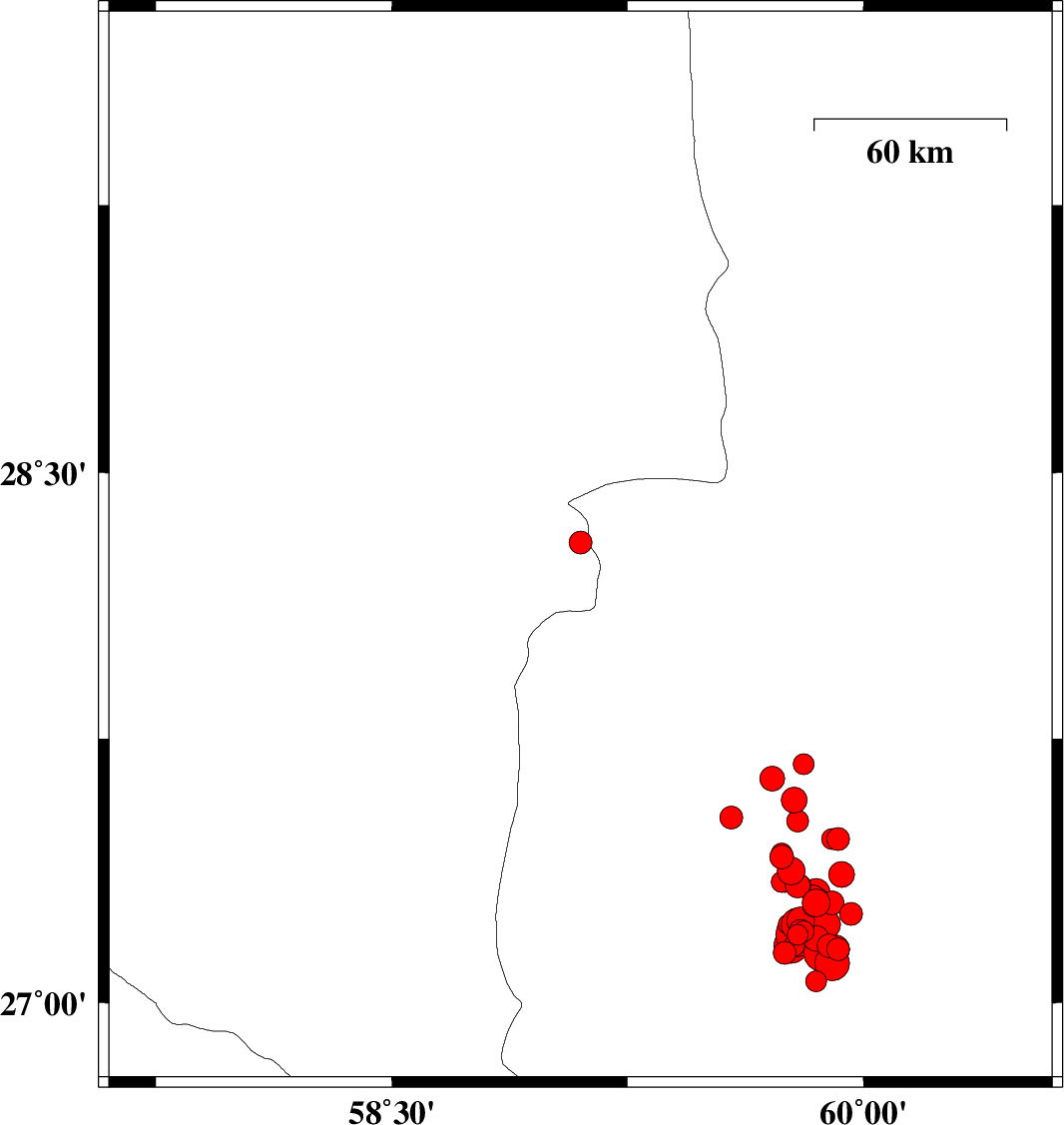 | 2011/01/27 | 09:07:53.3 | 12:37:53.3 | 28.07 | 59.2 | 15 | ML5 | Sistan va Baloochestan Province, 148 km North-East of Kahnuj | ||
