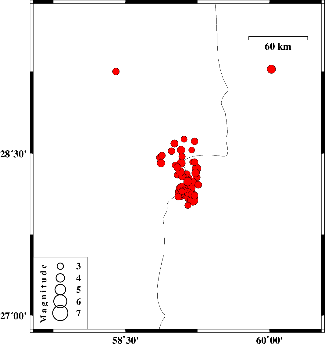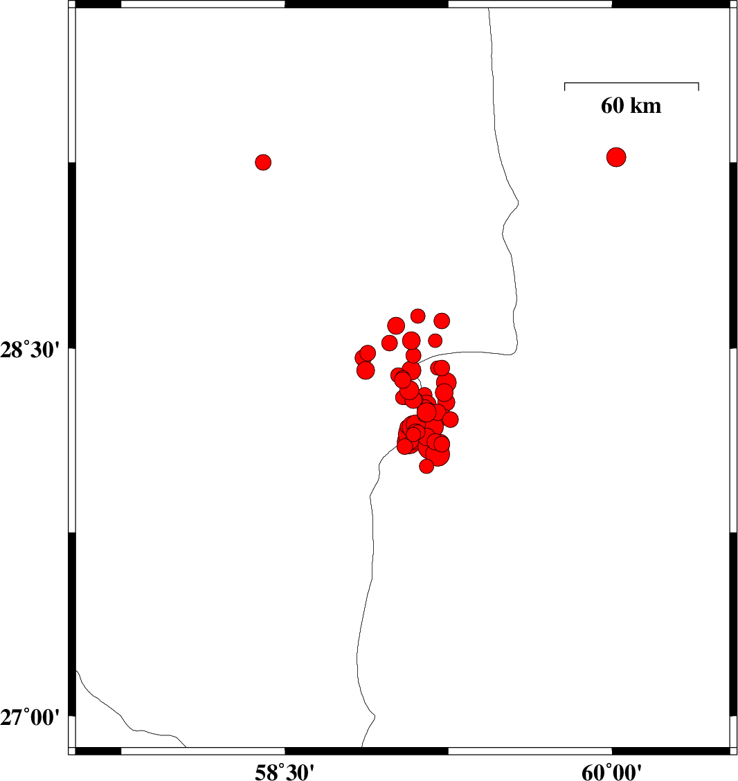 2011/01/27 09:47:30.6 13:17:30.6 28.6359.1115 ML3 Kerman Province, 91 km South-East of Bam