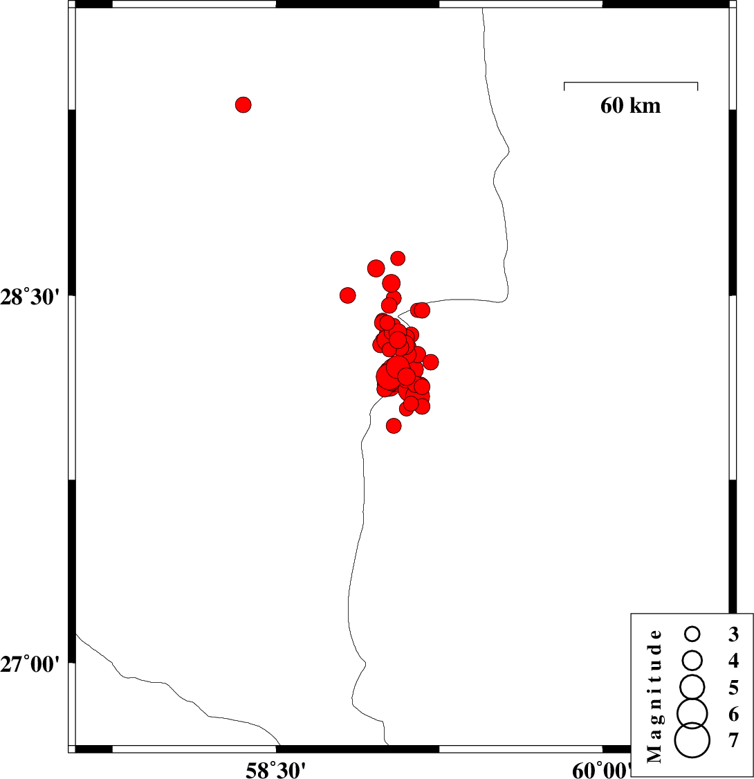 2011/01/28 08:37:25.5 12:07:25.5 28.3359.0814 ML3 Kerman Province, 112 km South-East of Bam