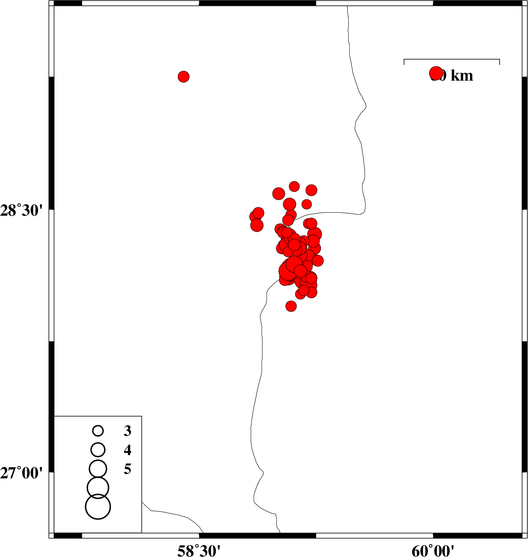 2011/01/28 08:37:25.5 12:07:25.5 28.3359.0814 ML3 Kerman Province, 112 km South-East of Bam