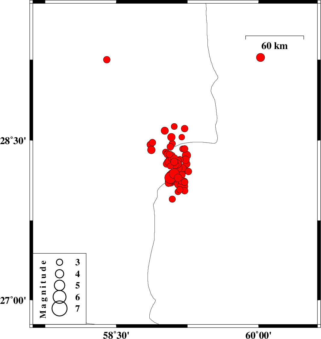 2011/01/27 13:07:36.7 16:37:36.7 28.359.0514 ML3 Kerman Province, 113 km South-East of Bam
