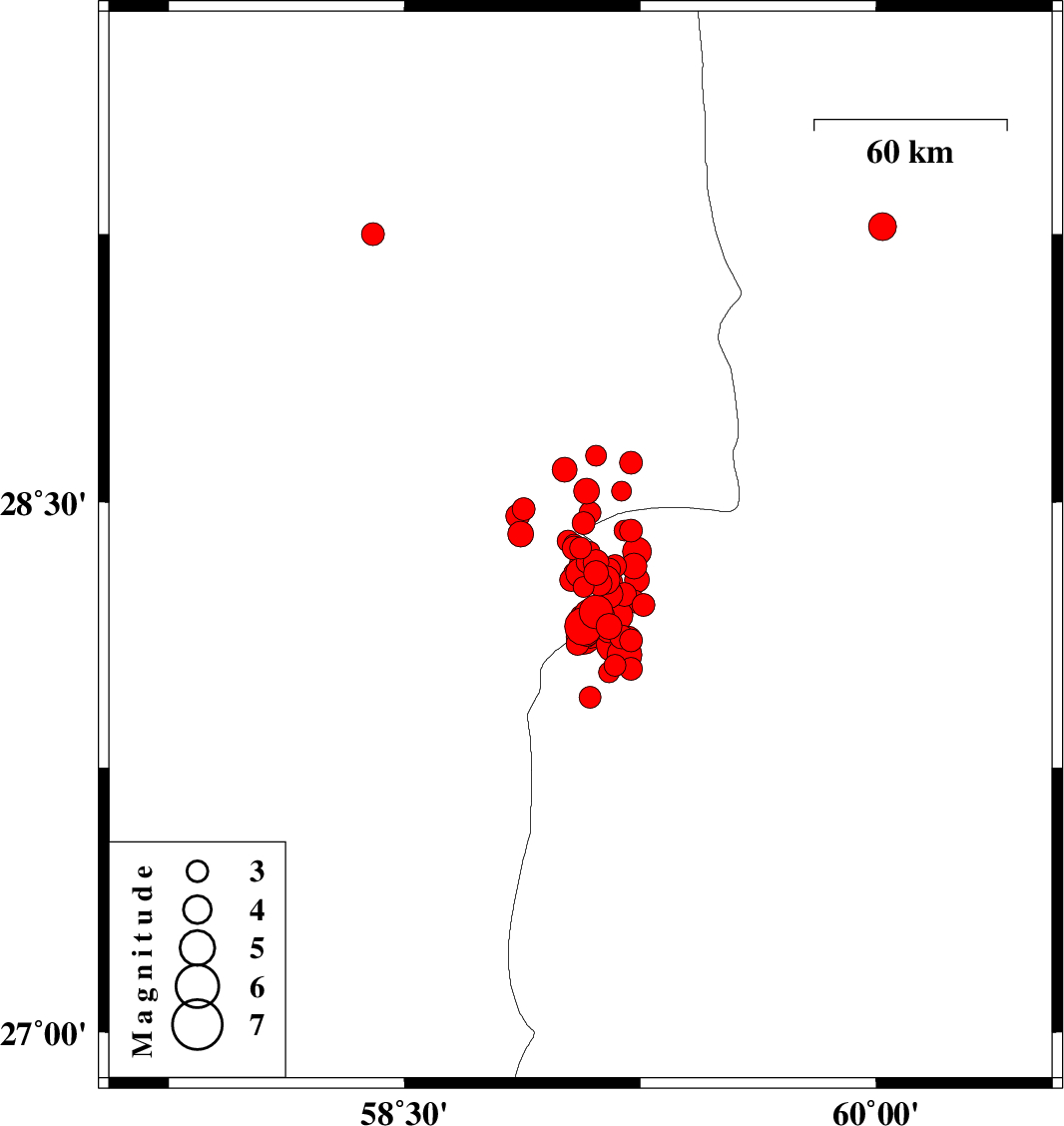 2011/01/27 09:47:30.6 13:17:30.6 28.6359.1115 ML3 Kerman Province, 91 km South-East of Bam