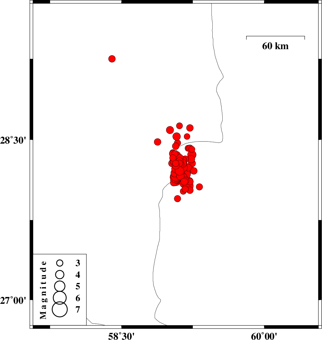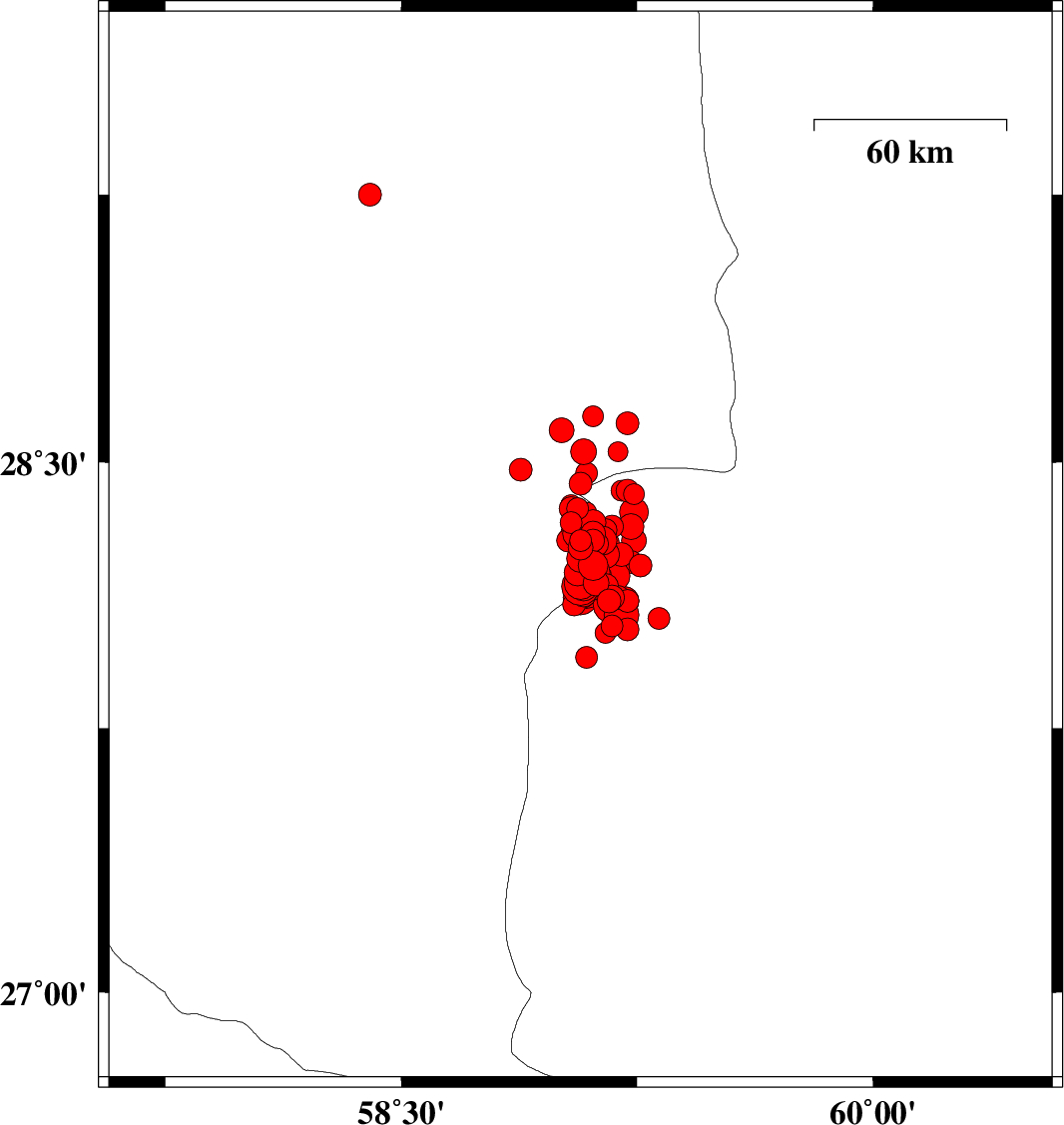 2011/01/28 01:21:03.4 04:51:03.4 28.1759.0614 ML3 Kerman Province, 136 km North-East of Kahnuj
