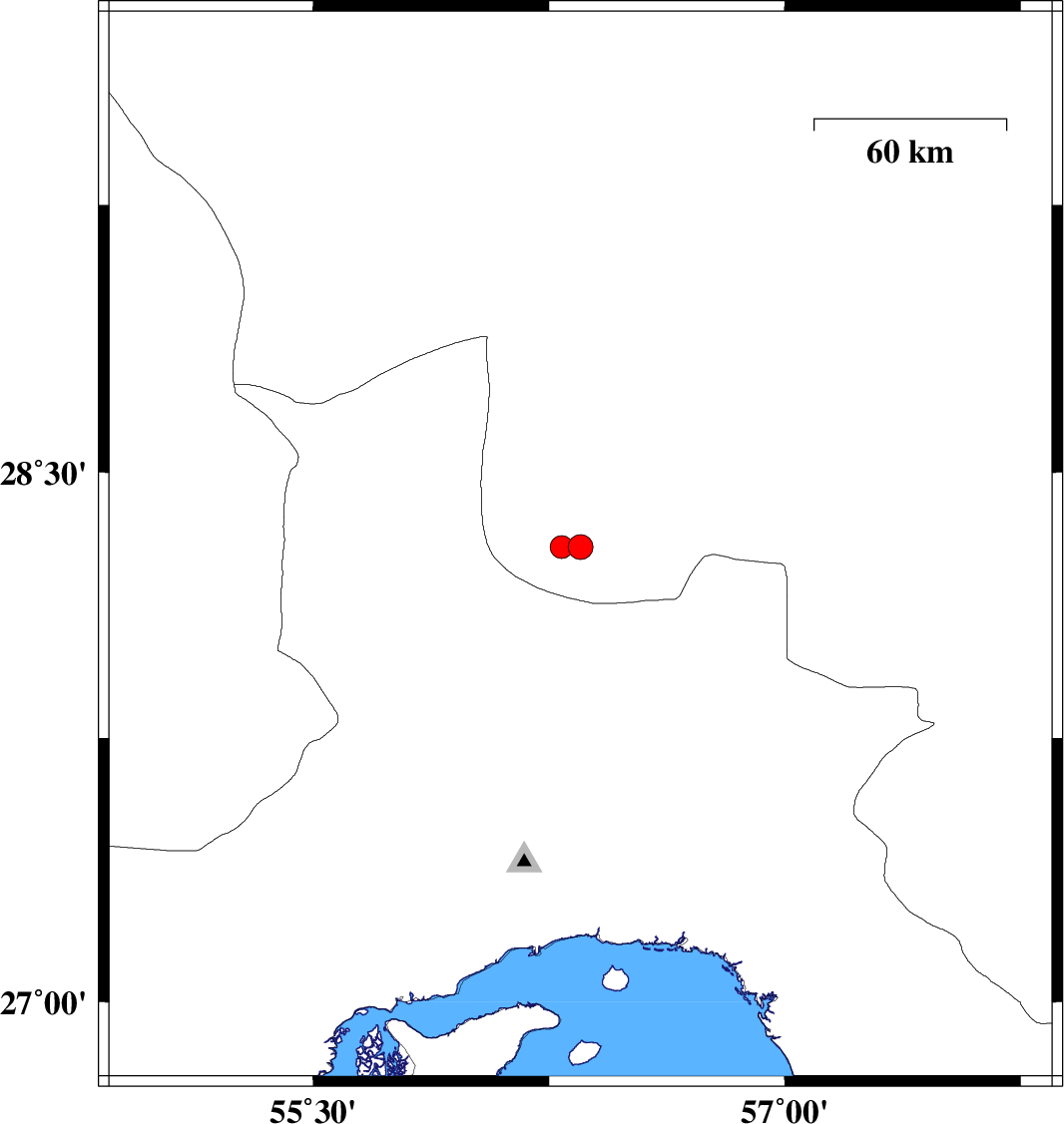 | 2011/02/05 | 16:20:10.1 | 19:50:10.1 | 28.29 | 56.35 | 14 | ML3.5 | Kerman Province, 44 km East of Hajiabad | ||