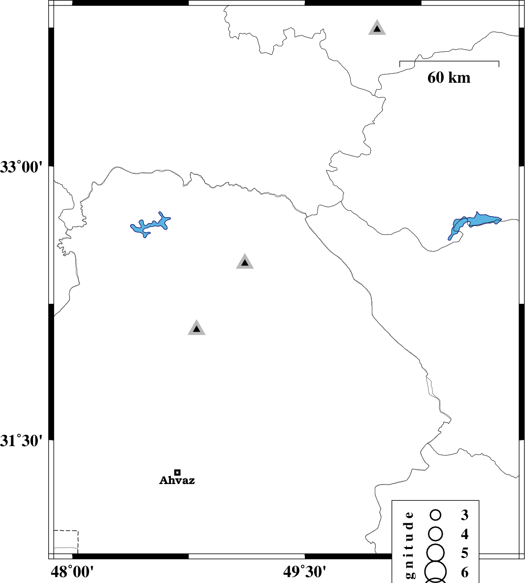 | 2011/02/23 | 15:25:31.4 | 18:55:31.4 | 32.37 | 49.38 | 15 | ML2.9 | Khoozestan Province, 25 km East of Lali |