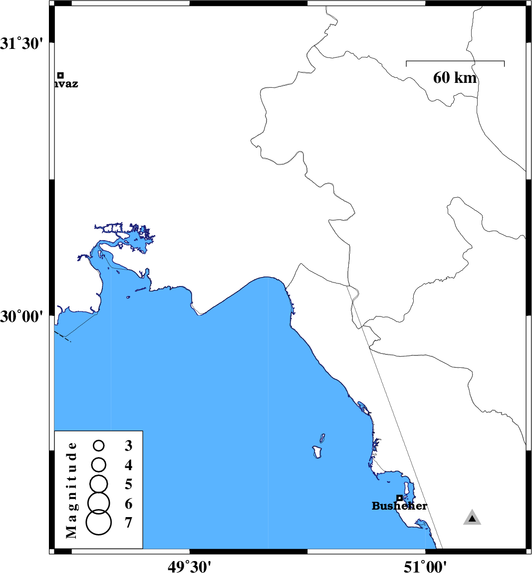 | 2011/02/23 | 20:30:50.9 | 00:00:50.9 | 30.2 | 50.14 | 14 | ML3.4 | Khoozestan Province, 41 km East of Hendijan |