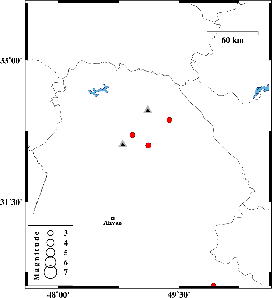 | 2011/02/24 | 06:16:51.2 | 09:46:51.2 | 32.21 | 48.92 | 26 | ML3 | Khoozestan Province, 19 km North of Shushtar | ||