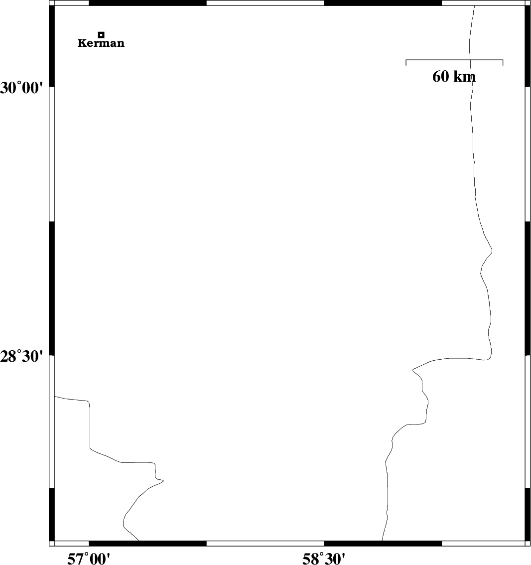 | 2011/01/31 | 01:56:06.7 | 05:26:06.7 | 28.33 | 59.04 | 14 | ML3.1 | Kerman Province, 110 km South-East of Bam |